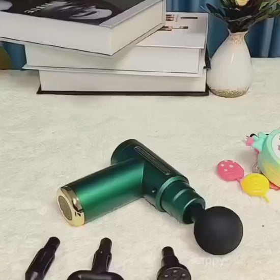 Pistolet de massage portable pour un soulagement profond des muscles — 6 niveaux d’intensité, plusieurs embouts, batterie longue durée — parfait avant/après l’effort.